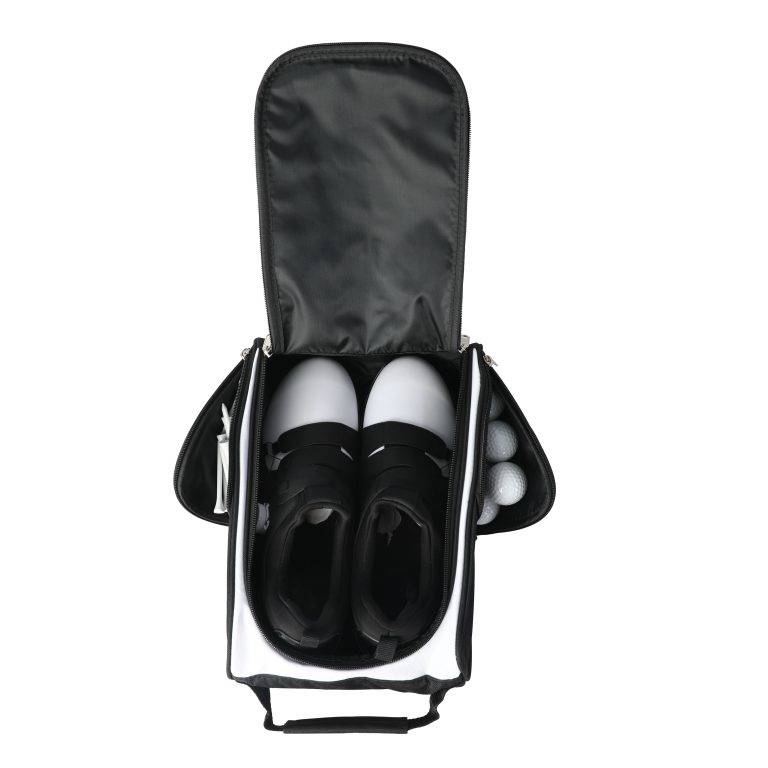 PackSavvy Golf Shoe Tote – Custom Black/White 600D Polyester